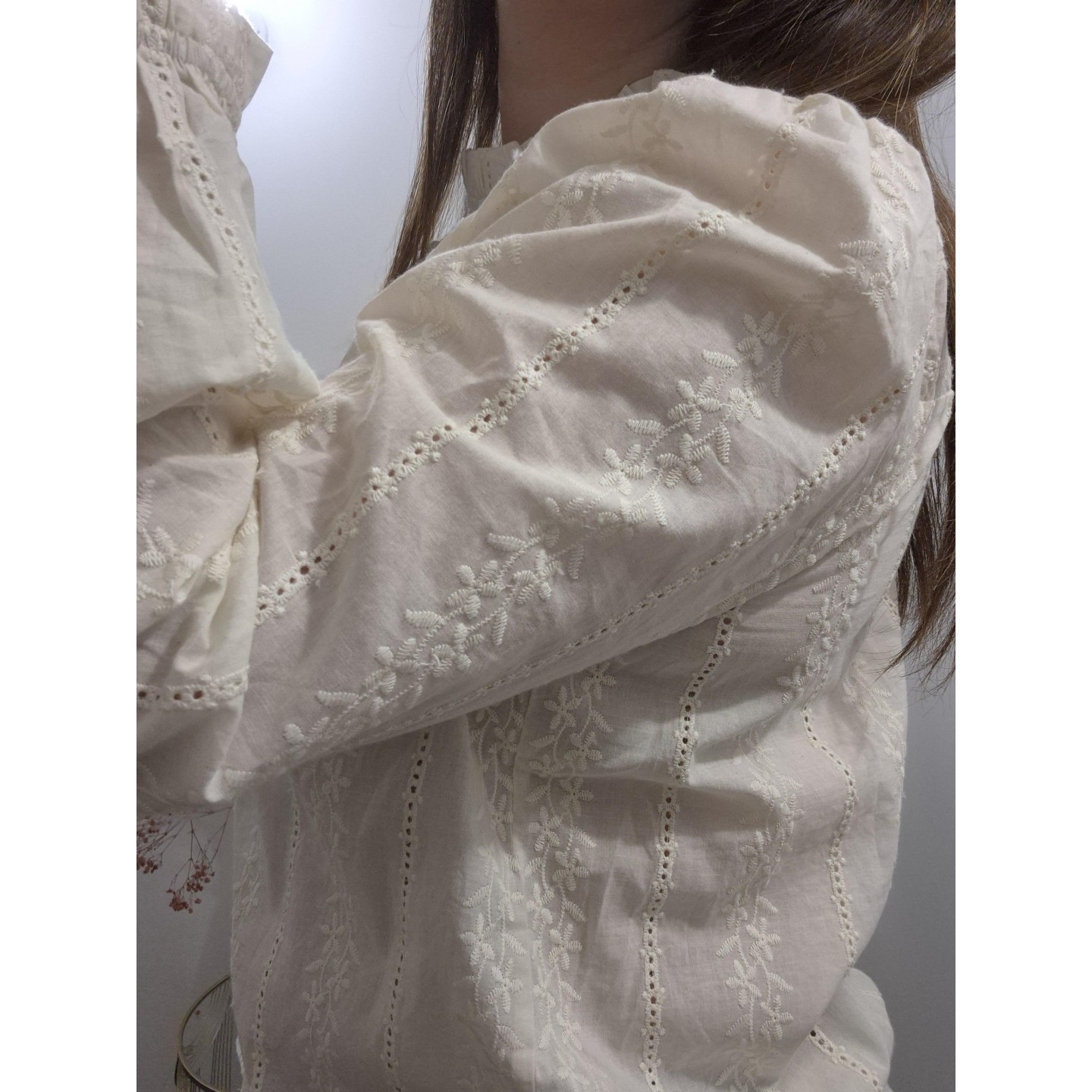Blouse écru avec broderies fleurs