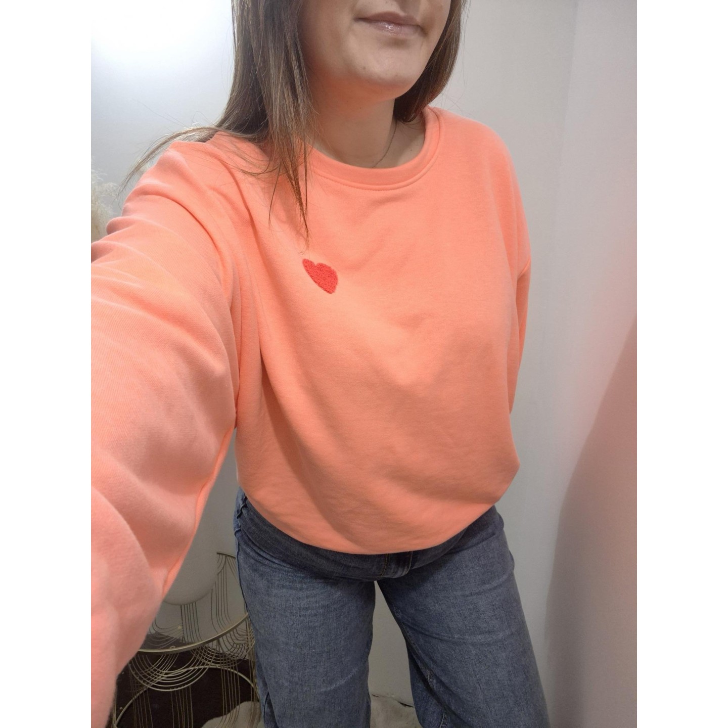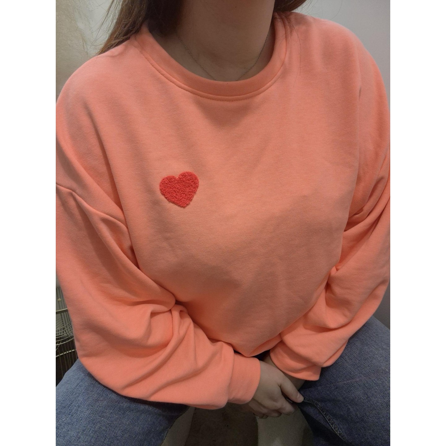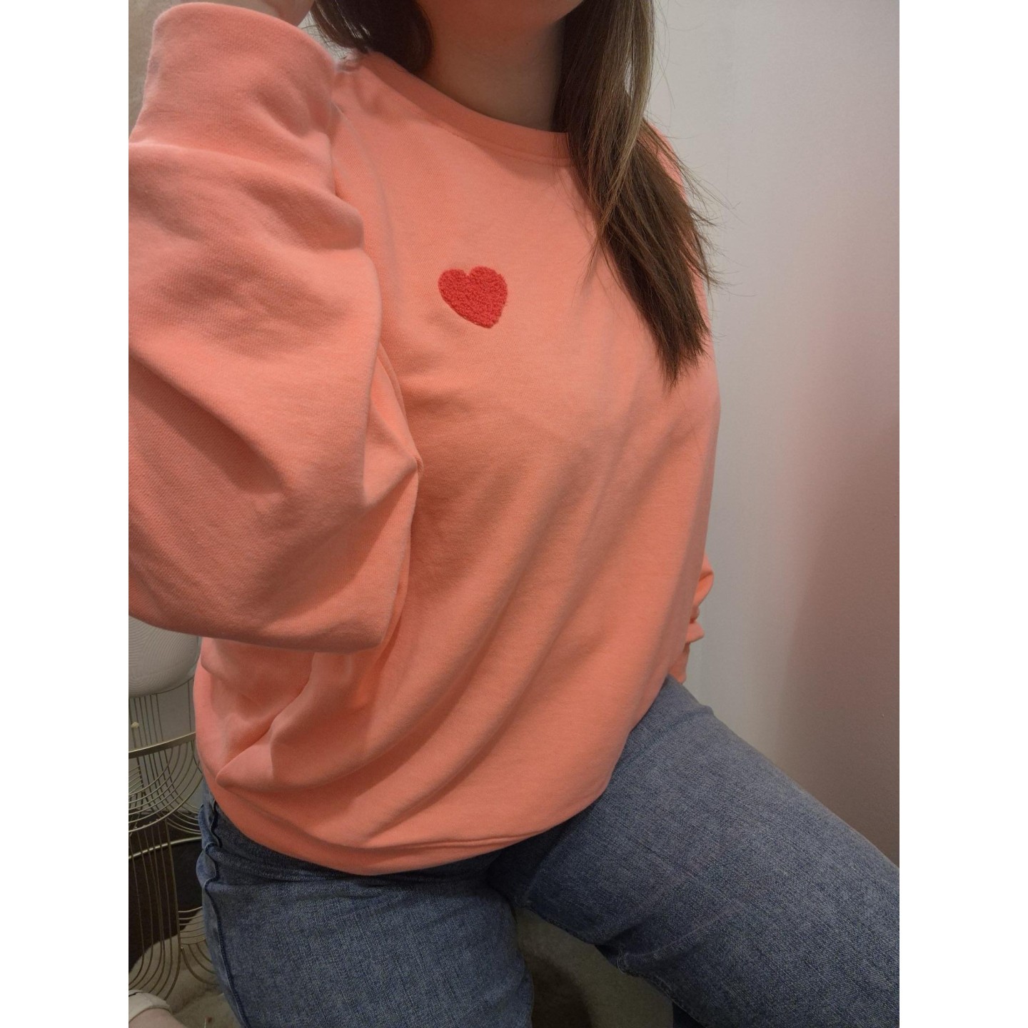 Sweat couleur corail, col rond